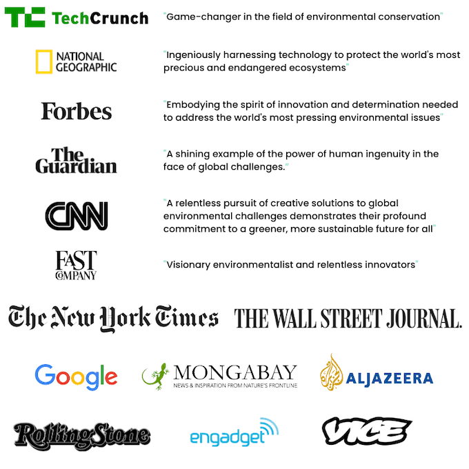 Prominent press partners such as The Guardian, Mongabay, Fast Company, CNN, TechCrunch, Forbes, National Geographic, Rolling Stone, The New York Times, ScienceDirect, The Globe and Mail, Al Jazeera, and La Nación have covered our work, helping us amplify our mission and bring international attention to our work in bioacoustic monitoring.